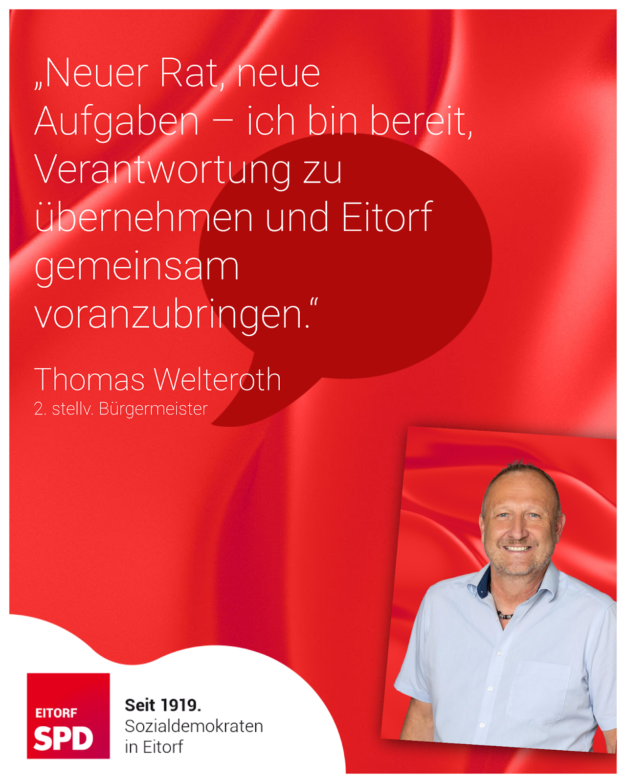 Thomas Welteroth wurde zum 2. stellvertretenden Bürgermeister der Gemeinde Eitorf gewählt.